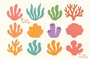 - Telones marinos: Cuelga cortinas de tiras metálicas en colores aqua o lila para simular algas marinas. También puedes usar redes de pesca decorativas y conchitas de plástico o reales.