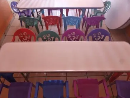 Sillitas infantiles y mesitas tablón infantil: cuentan con mobiliario especialmente pensado para niños, ideal para fiestas infantiles.