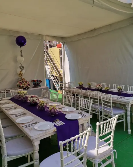 Ofrecen también renta de mesas, sillas (incluyendo Tiffany y Cross Back), mantelería y vajillas, ideales para montar celebraciones elegantes o temáticas. -