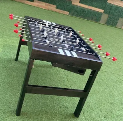 Renta de juegos infantiles populares, como futbolitos, juegos de hockey de mesa y, por supuesto, el característico Chuta Gol, ideal para añadir un toque de competencia y deporte a cualquier celebración.