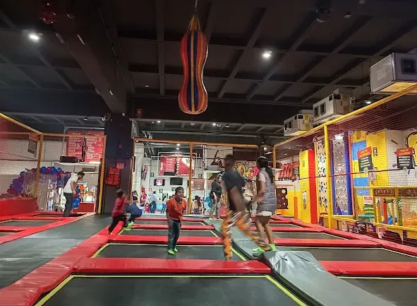 Espacio adaptado para los más pequeños, con trampolines y estructuras seguras para su diversión.