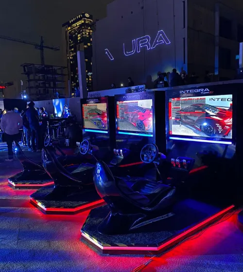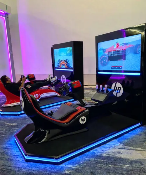 Renta de simuladores: Ofrecen una amplia gama de simuladores de carreras (Fórmula 1, Nascar, etc.), motos y camiones. Estos simuladores son personalizables para incluir la marca del cliente.