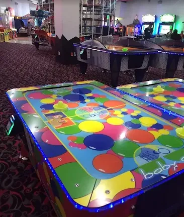 Espacio especial para los más pequeños con juegos inflables, estructuras de mini-karts y atracciones seguras.