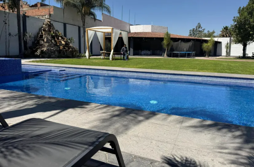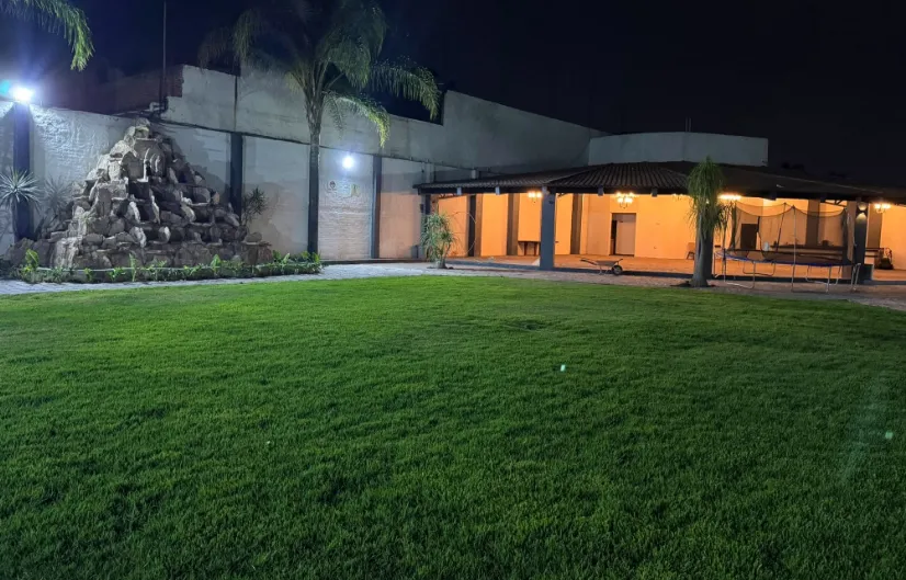 Jardín: Amplias áreas verdes, ideales para ceremonias o montajes exteriores.