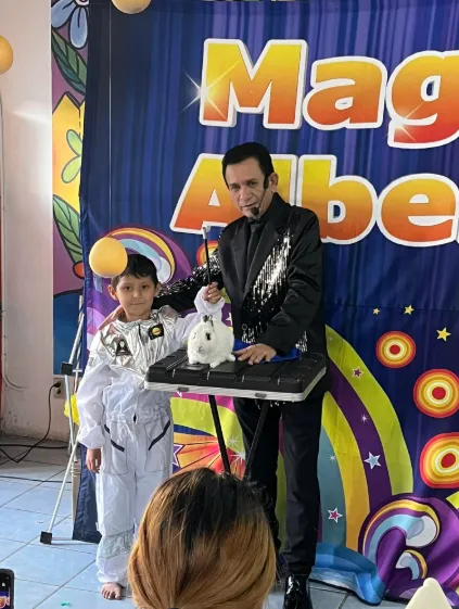 Mago Albert destaca por su habilidad para mantener la atención del público de todas las edades, mezclando humor, magia y participación activa, lo que hace que su espectáculo sea ideal para eventos familiares, escolares y fiestas infantiles.