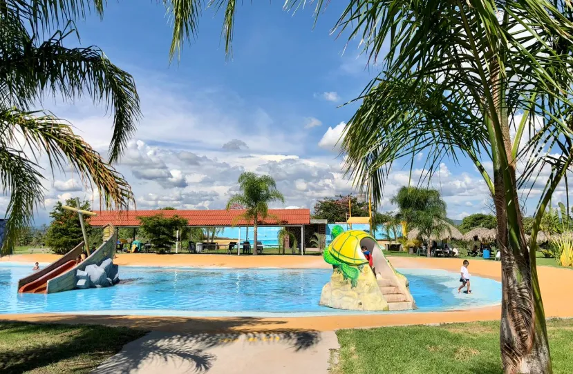 El espacio está diseñado para combinar la diversión del agua con convivencia familiar, ofreciendo albercas de agua caliente, zonas para niños y áreas al aire libre para disfrutar en grupo.