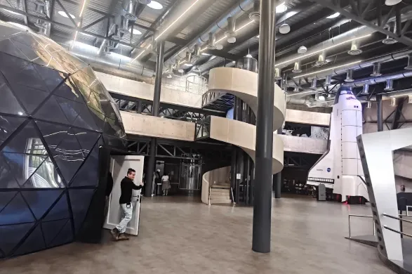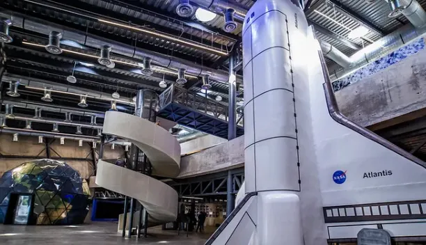 Exhibiciones interactivas donde los visitantes pueden experimentar con tecnología, aprender sobre el sistema solar, carrera espacial, etc.