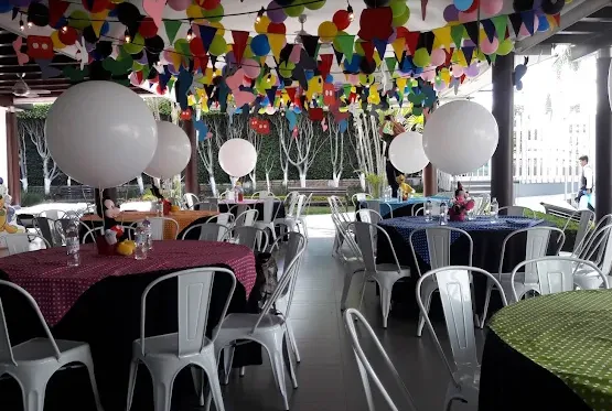Este espacio está diseñado como salón de eventos versátil, apto para celebraciones infantiles, familiares o sociales, con un ambiente moderno-acogedor que permite adaptarse tanto a fiestas con niños como a eventos más generales.