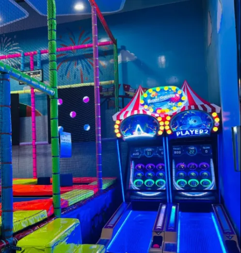 Áreas de entretenimiento activas para niños: laberinto, trampolines, zona de videojuegos, realidad virtual, área Kids.