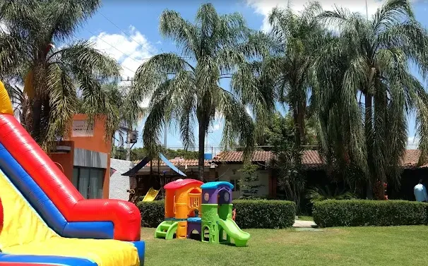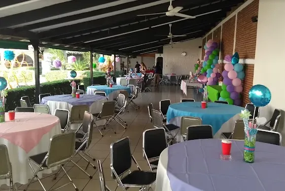 Paquete Infantil: incluye mesas redondas, sillas acolchonadas, tablones infantiles para niños, sillas infantiles, área techada para piñatas, barra de servicio, refrigerador, música ambiental, vigilancia de automóviles.