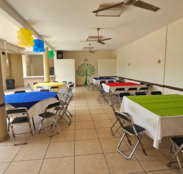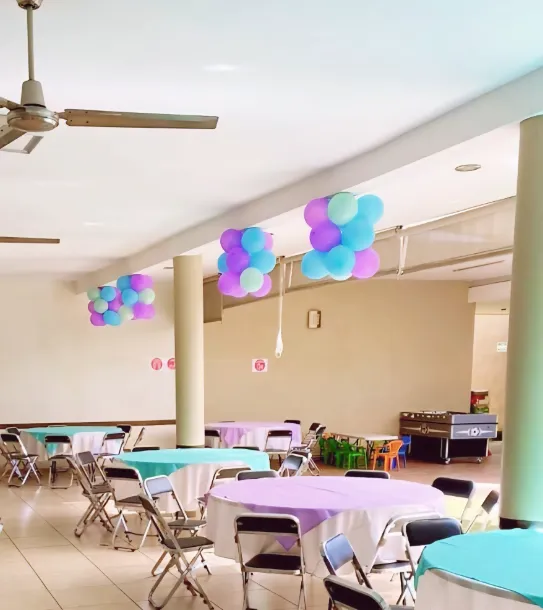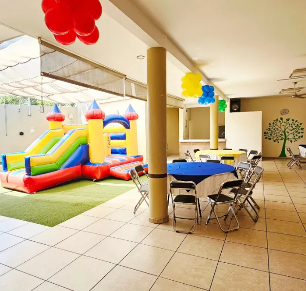 El ambiente que ofrece es funcional, pensado para que los niños tengan su celebración sin complicaciones y los padres/acompañantes puedan sentirse cómodos.