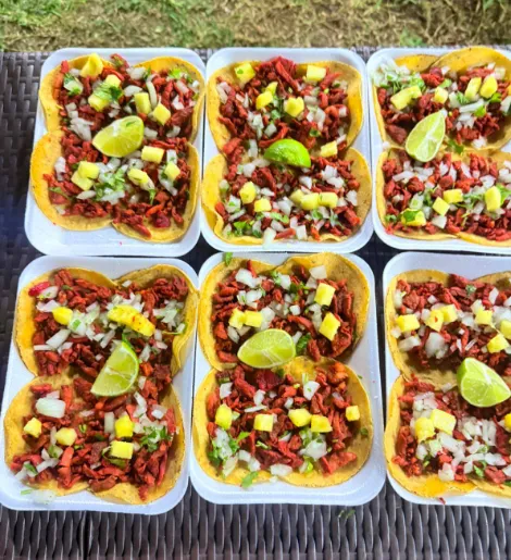 🔥 Tacos clásicos mexicanos: Preparados con tortillas calientes y guisados tradicionales, ideales para antojos rápidos o comidas informales.