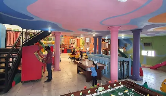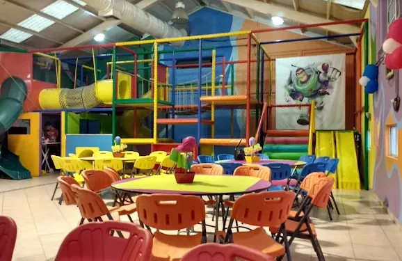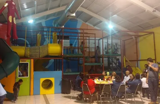 Área de juegos e interacción para niños: incluye maquinitas, futbolito, área para piñata, y un espacio pensado para mantener a los pequeños entretenidos.