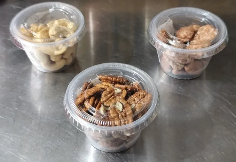 Vasitos de botanas: Ofrecen vasitos con una variedad de botanas, con un pedido mínimo de 80 unidades.
