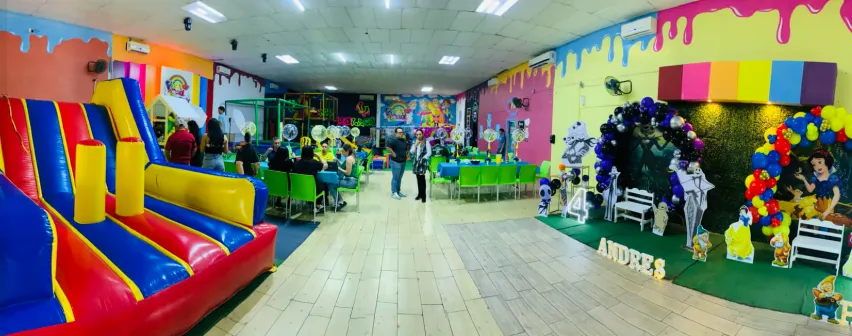 Rainbowland Party es un salón de fiestas infantiles vibrante ubicado en Ciudad Juárez, Nuevo León, específicamente en el estacionamiento del Club Alegría sobre Avenida Eloy Cavazos km 4.5. Este espacio celebra la fantasía y la imaginación, trayendo arcoíris de alegría, colores vivos y diversión diaria. Es ideal para festejos llenos de energía, con un enfoque visualmente encantador y lleno de detalles lúdicos que hacen a cada celebración especial.
