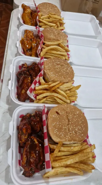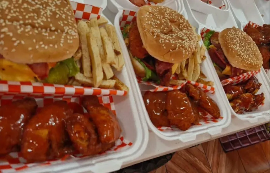 Su menú combina hamburguesas jugosas con pan artesanal y toppings deliciosos junto con alitas en distintas salsas y estilos, asegurando que cada invitado encuentre su favorito. Además, su servicio a domicilio garantiza que la comida llegue caliente y lista para servirse, sin complicaciones de logística ni preparación.