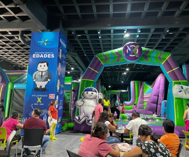 A diferencia de un salón infantil convencional, InflaPark funciona como un espacio tipo parque, donde los inflables son los protagonistas y los niños pasan la mayor parte del evento jugando y liberando energía. Al mismo tiempo, los adultos cuentan con áreas designadas para observar y acompañar la celebración de forma cómoda y segura.